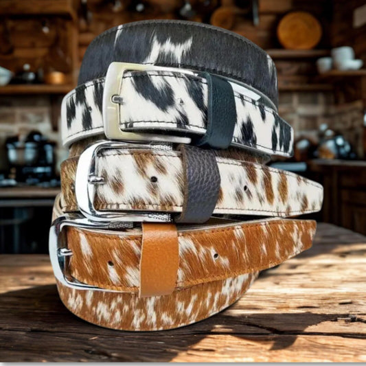 Hair On Cowhide Leather Belt – Handmade Western Rodeo Style Cow Print Belt for Men