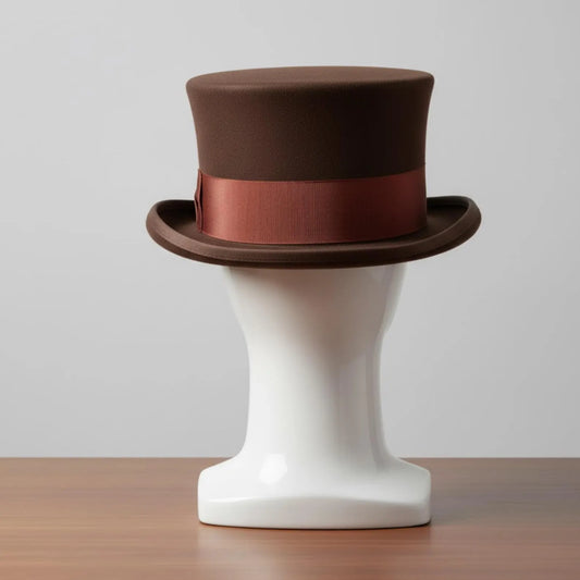Elegant Brown Felt Top Hat, a Timeless Victorian Topper for the Classic Gentleman
