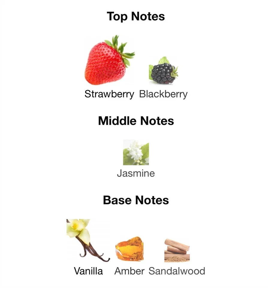 Scent Notes: Floral, Strawberry, Blackberry, Jasmine, Vanilla, Sandalwood